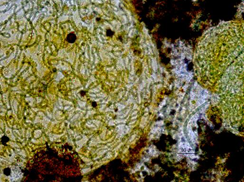 Photomicrograph of Nostoc, a candidate microcystin producer in the benthos of California wadeable streams. This genus can fix nitrogen and is commonly found in oligotrophic streams subjected to minimal human disturbance. Photo credit: Betty Fetscher